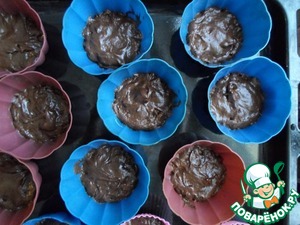 Равномерно распределяем шоколадное тесто по 24 формочкам для маффинов.