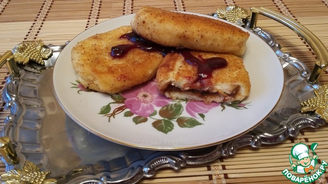 Не знаю, действительно ли именно так делают сырники в Киеве? Название придумано не мной, поэтому я его оставила. А сырники по этому рецепту получаются с хрустящей корочкой, нежным мякишем и сладкой тягучей начинкой. Ну просто очень вкусно!