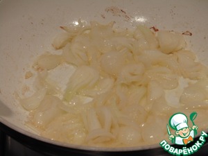 В сковороде разогреть 25 грамм сливочного масла и 2 ст. ложки оливкового, выложить порезанный лук, посолить, обжарить пару минут, добавить 25 мл белого вина, дать ему выпариться. Готовый лук переложить в тарелку, закрыть крышкой, чтобы не остыл.