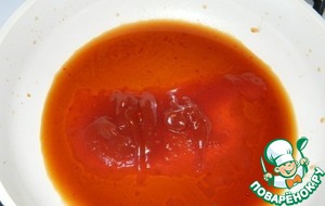 Для приготовления соуса в глубокой сковороде смешать уксус, соевый соус (примерно 4 столовые ложки), томатную пасту. Поставить на огонь и прогреть, добавив часть сахара.
