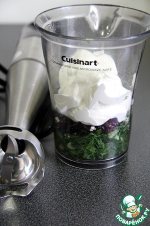 • Теперь готовим соус. Смешать мелко нарезанные укроп и зеленый лук, сметану, клюкву, сыр, соль и перец (по вкусу)