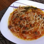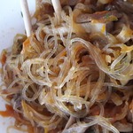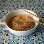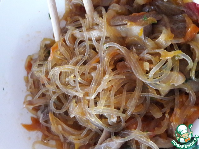 Далее добавляем фунчозу и провариваем около 2-3 минут. Посолить. С солью будьте осторожны, не пересолите, так как соевый соус достаточно соленый, и соли требуется самая малость.