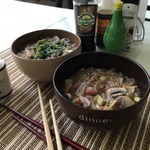 [+4]Приготовила сегодня на обед. По ходу заменила морковь на кабачок, в тарелку для остринки добавила васаби, а для кислинки брызнула соком лайма. Ещё вустершерский