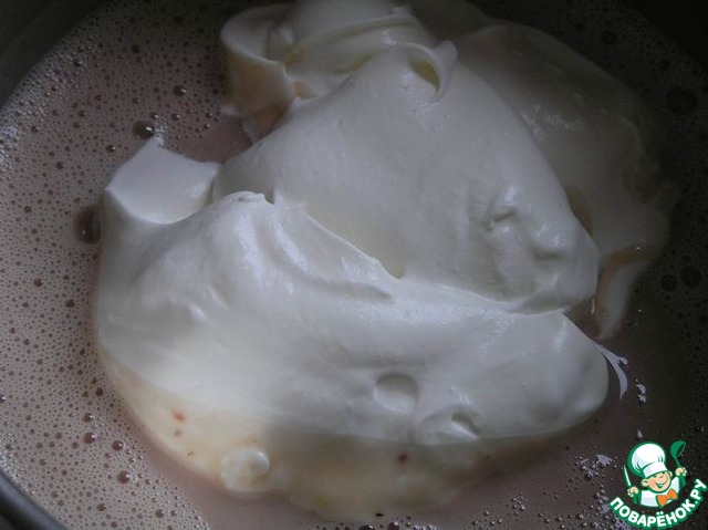 Молоко нагреть почти до кипения, влить тонкой струйкой в желтки, постоянно помешивая. Поставить смесь на огонь и снова овести почти до кипения (или пока не начнет подниматься пар), снять с огня.
