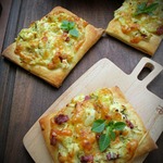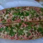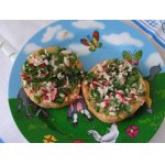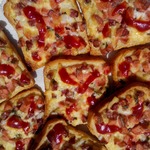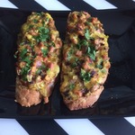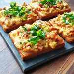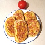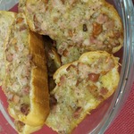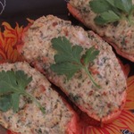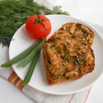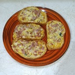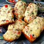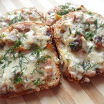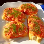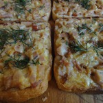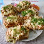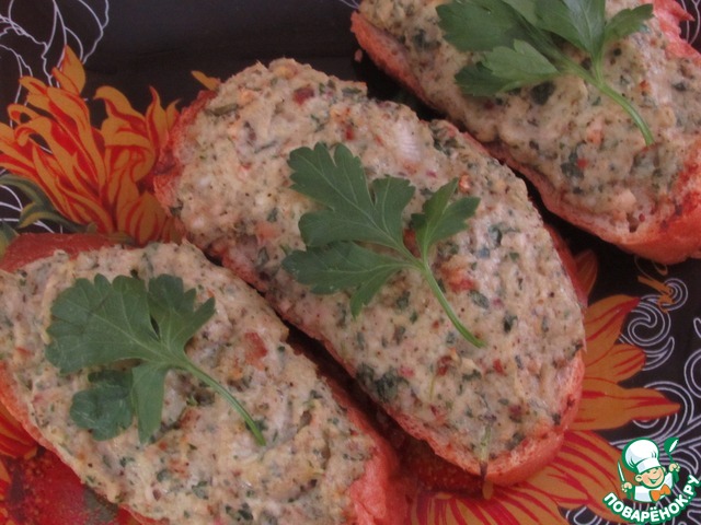 Выкладываем массу на ломтики хлеба (я использовала свой домашний "Белый хлеб с маслом гхи"- его рецепт есть на сайте) и отправляем в духовку.