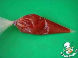Клубничный джем (я использовала ТМ "Махеев") подогреть и пропустить через сито.