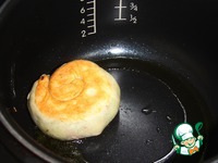 Затем, когда одна сторона станет золотистой, переворачиваем рулет и готовим еще 7 минут. Рулет лучше есть сразу, пока он теплый.