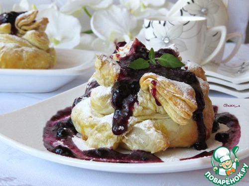Рецепт «Мешочки с сыром и черничным джемом»: