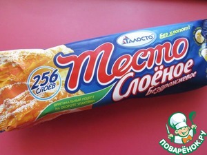 Слоёное тесто можно приготовить самим, но мне проще взять готовое. Итак, берём готовое слоёное тесто и размораживаем его.