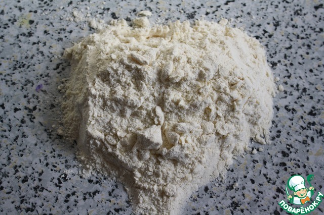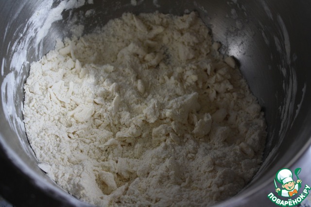 Достаем посуду с мукой и вымешиваем миксером в крошку или холодными руками как получиться- главное не перегреть! -