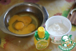 Теперь смешайте 3 яйца, пару капель лимонного сока и 150 г майонеза. Можете, конечно, заменить на сметану, но тогда придется досаливать, и вкус все равно будет иной.