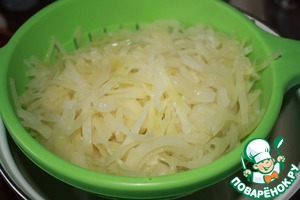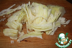Капусту нашинковать тонкой соломкой, лук кубиками.