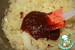 • Добавляем томатную пасту. Если у вас есть домашняя аджика, лечо или что-то в этом роде, смело используем именно её.