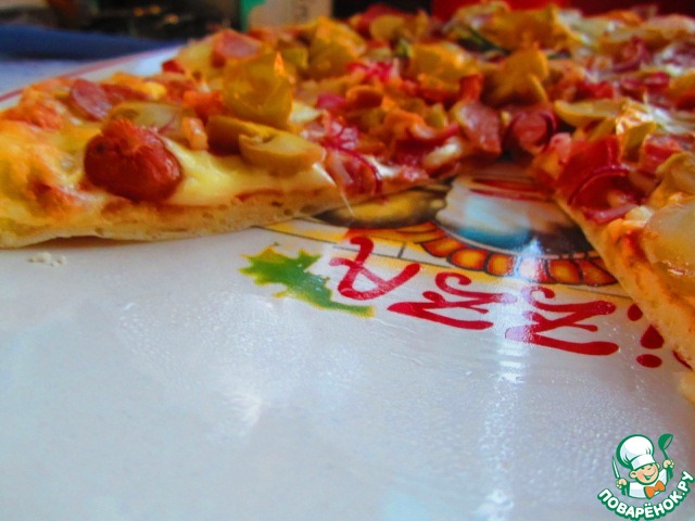Теста хватает на одну бООООльшую пиццу ! Не смотря на малое кол-во ингредиентов !
