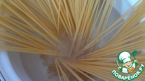 • Спагетти отвариваем в подсоленной воде до готовности. Откидываем на дуршлаг.