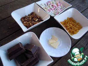 Ингредиенты для «Конфеты с шоколадом, изюмом и маршмеллоу»:
