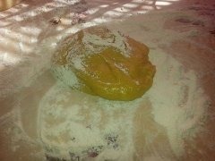 тесто получается липким, каждый шар перед раскатыванием обсыпаем мукой -