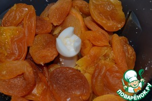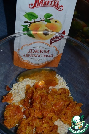 Измельченные курагу, джем, орехи и стружку перемешать.