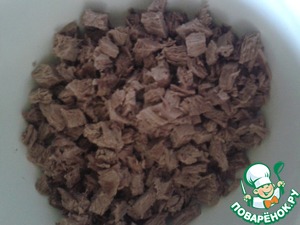Сваренное мясо нарезать.
