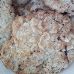 Осторожно формируем отбивную на ладони, панируем в муке и обмакиваем в яйце (я, чтобы не сильно извозиться, яйцо наносила силиконовой кистью на одну сторону, а на вторую уже на сковороде, тоже кистью)