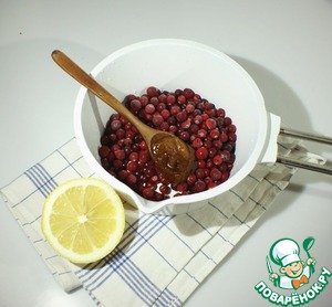 Для клюквенного соуса возьмите стакан клюквы, ложку меда, цедру и сок половинки лимона. Прогреть в сотейнике до взрывания))) ягод и размять в пюре.