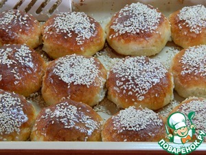 Готовим глазурь. Смешиваем сахарную пудру с лимонным соком. Готовые пирожки достаем из духовки, поливаем глазурью, пока они еще горячие, сразу же посыпаем кунжутом.