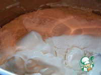 Далее добавляем оставшуюся муку и сметану. Вымешиваем тесто, накрываем и ставим в тепло еще на 1 час.