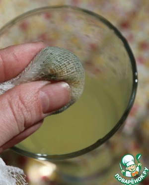 Теперь процеживаем "сироп", убирая листья и мякоть.