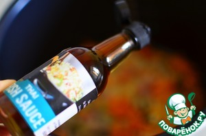 Добавить рыбный соус по вкусу. Выложить всё в отдельную посуду специальной лопаточкой, а чашу мультиварки можно быстро одним движением протереть бумажным потоленцем (а можно и вовсе этого не делать).