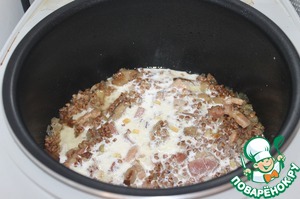 Через 10 минут наливаю 180 мл сливок и продолжаю варить на режиме РИС