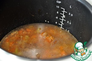 Включаем мультиварку на режим "Суп", варка 30 минут.