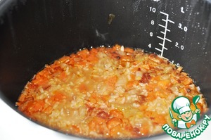 Кладём овощи в чашу мультиварки и обжариваем около 5 минут.