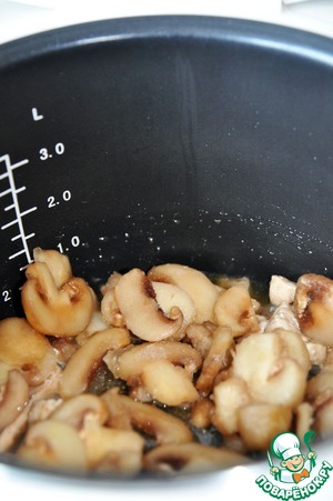 Включаем мультиварку на режим "Поджаривание", наливаем в чашу растительное масло. -