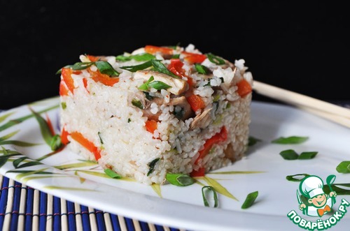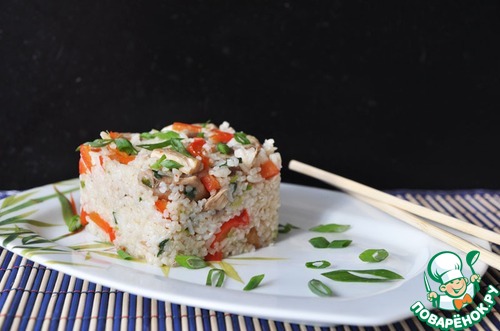 Подаём рис по-китайски, посыпав перьями зелёного лука.