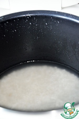 Берём рис, лучше длиннозёрный, промываем, кладём в чашу мультиварки и заливаем водою в соотношении 1 к 2. Закрываем крышку мультиварки.