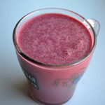 На 400 мл кефира 3,2% жирности взяла 2 небольших, готовых свёклы. Также в напиток добавила и сок, который выделился в процессе приготовления.