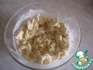 Добавляем муку с разрыхлителем и превращаем тесто вот в такую крошку.
