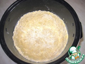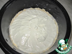 Берем чашу мультиварки, предварительно смазанную частью маргарина, и высыпаем в нее нашу крошку. Руками формируем дно с бортиками, как показано на фото. Наша основа готова.
