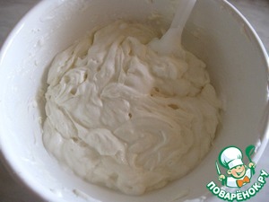Сверху заполняем воздушной творожной массой и разравниваем лопаточкой.