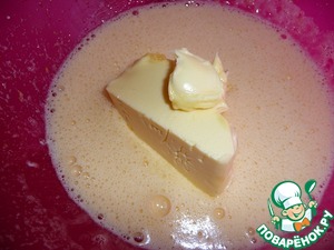 Добавляем очень мягкое масло и взбиваем.
