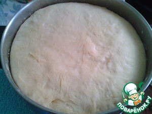 Разогреть духовку до 50-60 град., поставить тесто, предварительно прикрыв его полотенцем, на 30 мин.