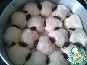 Совет поварятам: чем больше по количеству и меньше по размеру булочек вы укладываете в противень, тем больше оливок будет в хлебе и тем вкуснее будет результат!!!