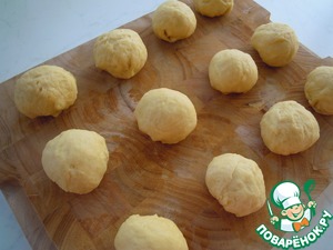 Вымесите тесто еще раз и разделите на 12 одинаковых кусочков (шариков).