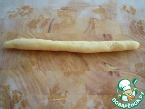 Раскатайте каждый кусочек в колбаску. (На доске следы от масла).