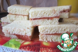 Воздушное дрожжевое тесто с миндальной начинкой, лимонной глазурью и джемом.