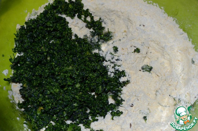 • К муке добавить петрушку, тмин, кориандр и соль, перемешать. Вместо петрушки можно использовать шпинат, тоже получится вкусно.