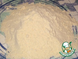 Муку, разрыхлитель, соль растереть руками в крошку.