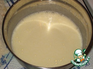 Яйца взбить с сахаром. Добавить ванилин, сливки.