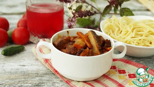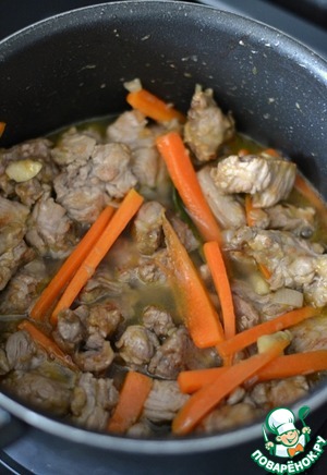- Бульон (или вода - количество, чтобы залить мясо, у меня ушло около 3 стак.)