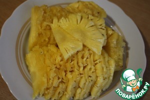 Сегодня в моем городе пасмурно... Дома витает грусть, утомленные ожиданием весны домочадцы сидят по своим комнатам... Я решила поднять им настроение! Подарю им солнце на десерт! Есть творог, есть ананас, презентованный нам друзьями, отдыхавшими в Тайланде, есть лимонный джем "Махеев". И снова эксперимент!